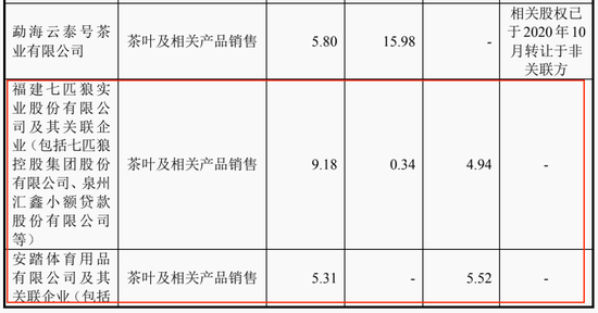 2018年到2020年,八马茶业向包括七匹狼及其关联企业销售茶叶及相关产品的销售额分别为4.94万元、0.34万元及9.18万元,累计销售额为14.46万元。