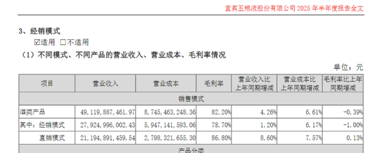 2025年上半年,五粮液前五大经销商销售收入合计300.61亿元,占销售收入的56.96%。而2024年上半年,前五大客户销售总额为106.98亿元,占销售收入总额的比例仅为21.12%。(前五大经销商或有综合平台商,营收包含经销与直销模式收入)
