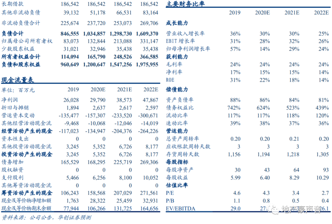 拿地方面,2020H1,公司新增土储约1,730万平米,对应货值达2,330亿元,同比-64%,上半年公司合理控制拿地节奏,规避拿高价地风险。截至2020H1末,公司总土地储备达2.48亿平米,权益土储达1.58亿平米,总土储对应货值高达3万亿元,其中80%位于一二线城市,公司平均土储成本仅4,300元/平米,占比20H1销售均价仅31%,后续毛利率有较强保障,公司充足且高质量的土地储备有望助力公司未来的销售表现和长期的稳健发展。