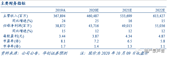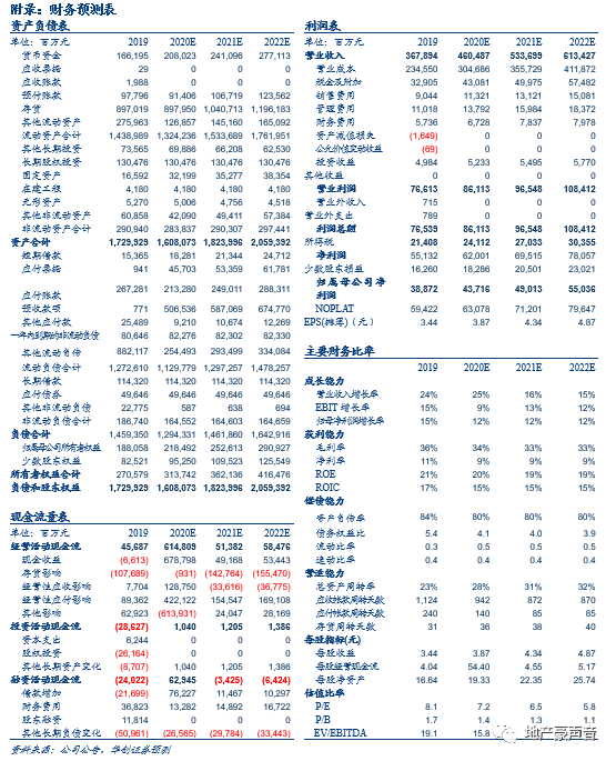 万科作为行业三十载领跑者,在提前倡导高周转、探索住宅工业化、专注中小户型精装修产品、深化小股操盘模式以及创新业务发展等方面都是当之无愧的先行者,其成果也已体现在公司过去销售和业绩的持续稳定增长中,也体现在行业领先的稳健经营和财务指标中,同时公司在物业等细分领域也已领跑行业,未来业绩和估值的贡献值得期待。我们维持2020-22年每股收益预测为3.87、4.34、4.87元,维持目标价45元,维持“强推”评级。