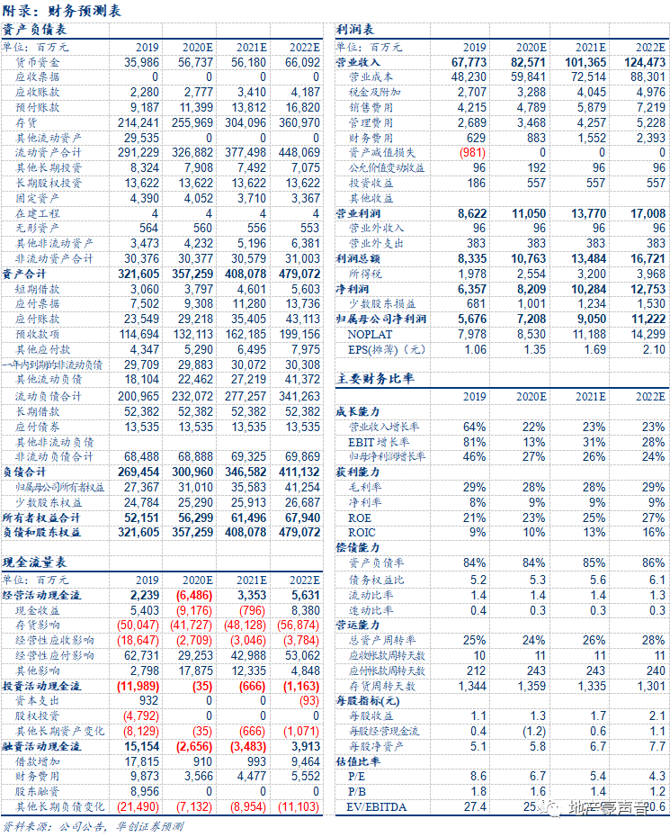 2020H1,公司拿地金额达546亿元,新增计容建面1,370万平,拿地/销售金额比63%、拿地/销售面积比159%,拿地积极,拿地均价3,985元/平,同比+44%,源于拿地能级上移,新增土储建面二三线城市占比85%。20H1末,公司总可售面积超7,400万平,同比+32%,相当于2019年销售的4.1倍,并形成“二三线为主,一四线为辅”的全国化均衡布局。此外,金科服务发行H股申请材料已获中国证监会受理,2020H1,金科服务营收同比+36%;净利润同比+80%。考虑到金科服务高成长性,分拆上市后有望获得主流物管公司高估值溢价,并有望增厚金科股份市值。