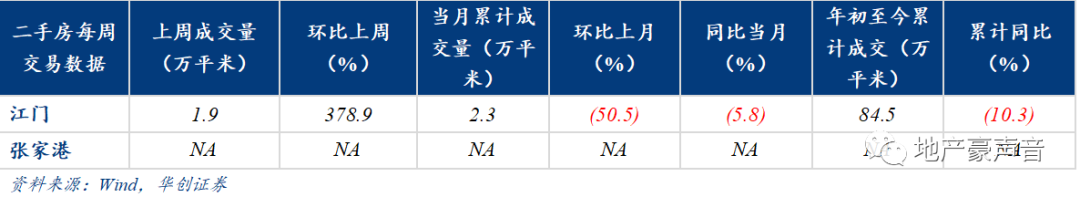 上周(10.10-10.16)4个三四线城市二手房房合计成交12.7万平米,环比上升465.9%;10月截至上周累计成交15万平米,较9月同期环比下降47.9%,较去年10月同期同比下降19.1%,其中当月成交同比较9月下降24.1pct;年初累计至今成交467.6万平米,同比上升13%。