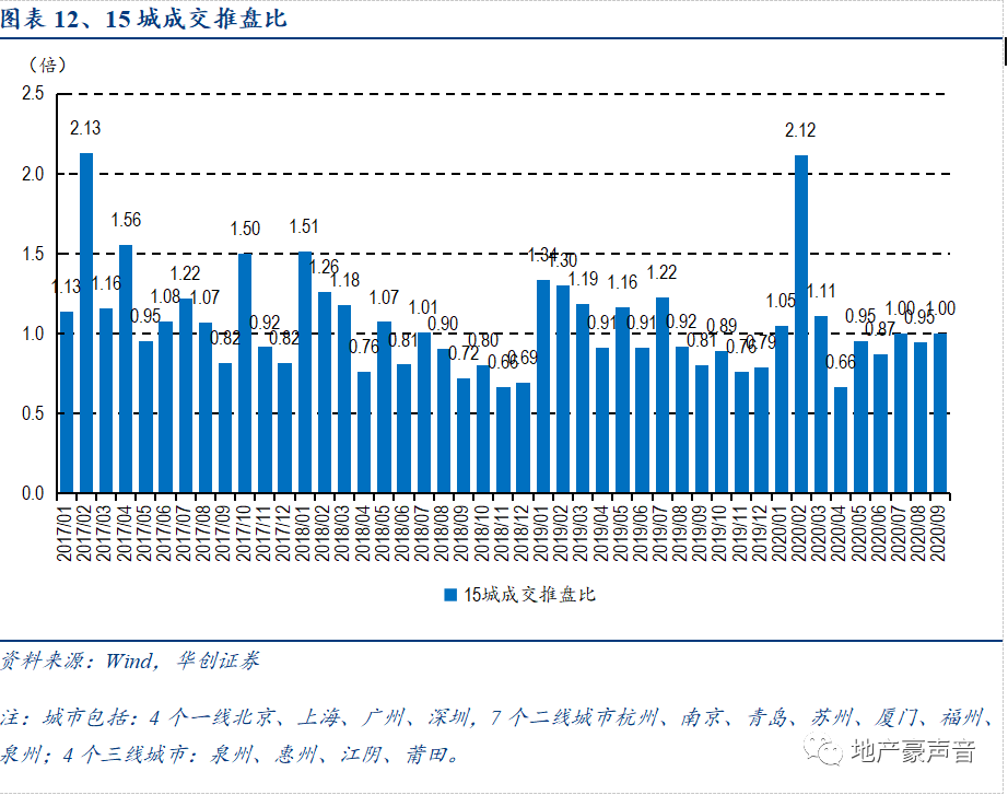 注:18年9月末开始宁波可售面积数据异常、变动较大,故剔除,以15城口径计算去化月数和成交推盘比。