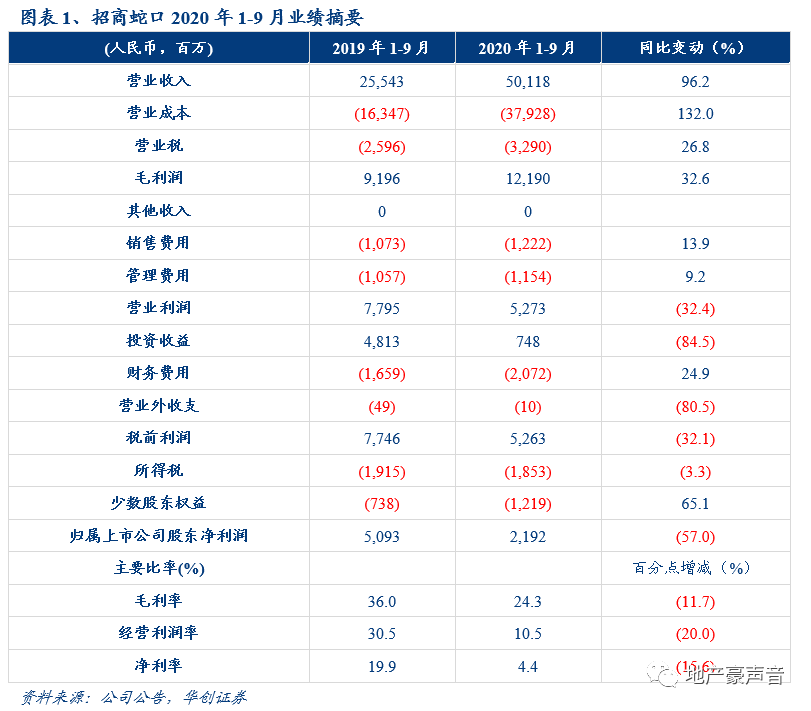 3Q20公司实现营业收入501.2亿元,同比+96.2%;归母净利润21.9亿元,同比-57.0%;扣非归母净利润21.0亿元,同比-58.1%;毛利率和净利率分别为24.3%和4.4%,分别-11.7pct和-15.6pct;三项费用率8.9%,同比-6.0pct,其中销售、管理、财务费用率分别-1.8pct、-1.8pct、-2.4pct;基本每股收益0.19元,同比-68.3%。公司营收大增但业绩大降主要源于:1)公司结转毛利率大幅下降;2)公司投资性收益7.6亿,同比-84.2%,主要系去年同期转让乐艺置业、商启置业51%股权后收益以及剩余股权按照公允价值重新计量确认投资收益合计29.7亿元;3)公司少数股东损益占比35.7%,同比+23.1pct。