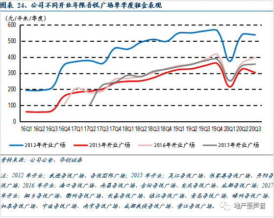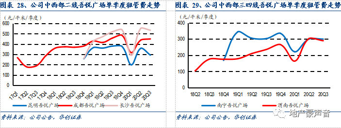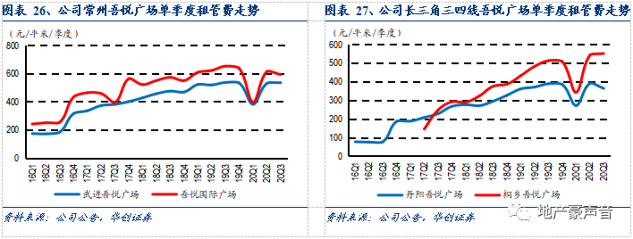 分区域来看,不仅位于公司常州大本营和长三角区域的综合体租管费实现了长期而稳定的增长,新布局的中西部二线城市比如位于昆明、成都、长沙的综合体以及位于三四线城市南宁、渭南的综合体也实现了租管费的稳定上行。