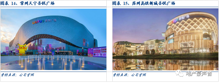 2) 新城吾悦广场:选址为城市副中心,力图以缤纷动感塑造区域型时尚商业中心,商业建筑面积一般为10-12 万平;