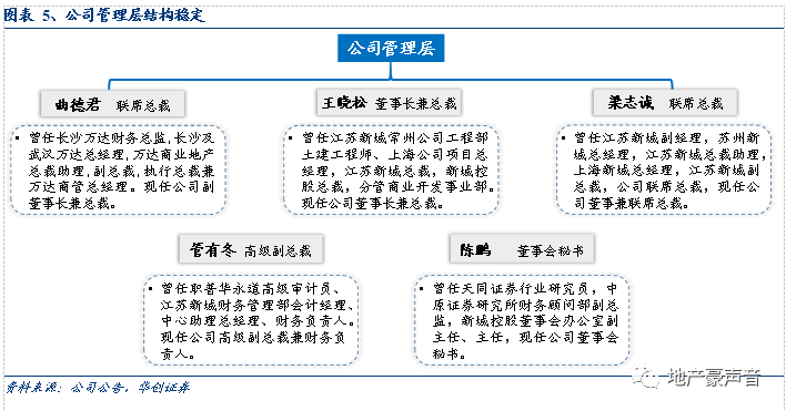 公司管理层架构稳定,住宅开发业务条线,联席总裁梁志诚、高级副总裁兼财务负责人管有冬均在公司工作多年,属于公司内部成长,在开发业务领域经验丰富。商业管理条线,公司董事长兼总裁王晓松曾分管商业开发事业部,并于2019年引进前万达商管总经理曲德君,运用其在商业地产领域的丰富经验,进一步支持商业地产业务快速发展。在公司最为困难的2019年,管理层无一离职,凸显出公司管理团队的高度稳定。