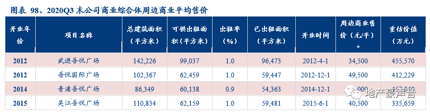 (四)经营情况:整体出租率持续处于高位,新开业商业广场出租率迅速提升