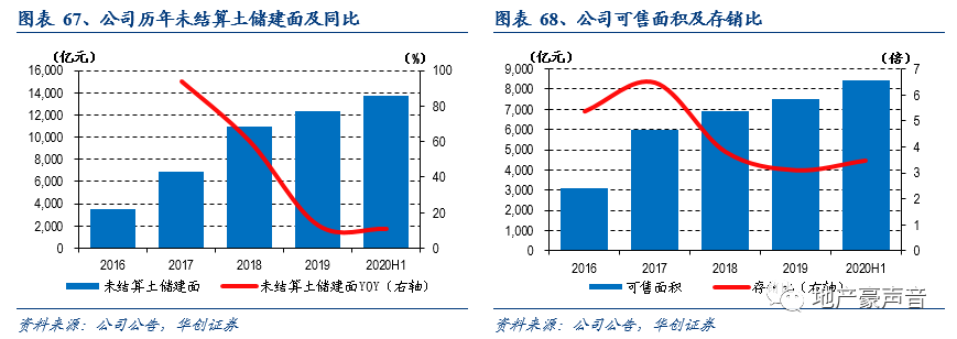 截至2020H1末,公司合计拥有可售面积8,415万方,按2019年销售面积2,432万方估算,公司存销比约3.5倍,对应可售货值约9,370亿元,公司可售资源仍相对丰富。