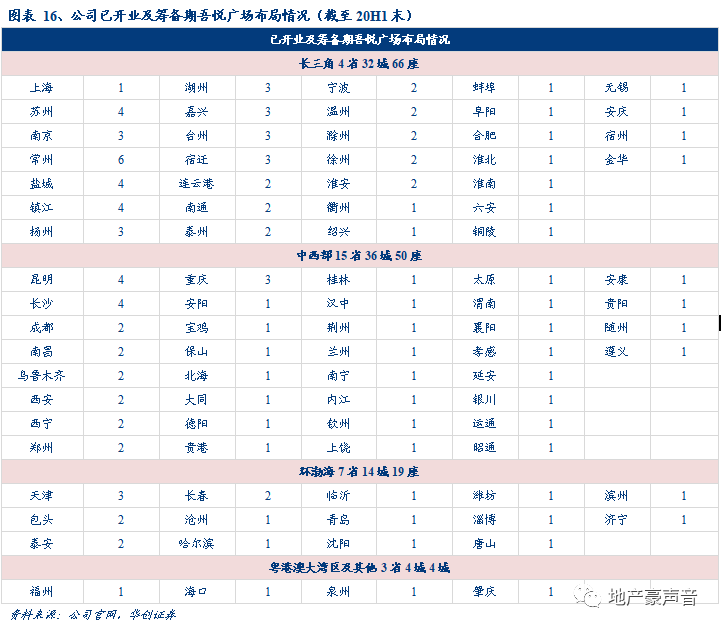 历经12载发展,公司商业业务依托吾悦广场已实现全国29个省份及直辖市、合计86个城市的扩张,截至2020H1末,公司在手吾悦广场达139座,其中已开业广场63座,筹备开业广场76座。