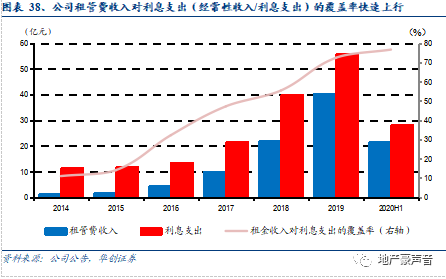 伴随公司吾悦广场数量的跨越式增长、租金稳步提升以及出租率持续高位,综合推动租金及管理费快速提升。2019、3Q2020公司租管费分别实现收入40.5亿、34.4亿,分别同比+83.2%、+23.0%,并计划2020年全年租管费收入55亿元,同比+35.6%。伴随租管费快速增长,其对公司利息支出的覆盖率(经常性收入/利息支出)从2015年的14.1%快速提升至2019年的72.4%,公司现金流的稳定性得到进一步增强,并且预计在未来1-2年经常性收入/利息支出覆盖率将突破100%。