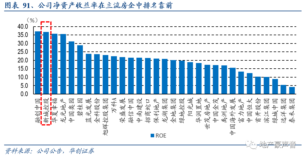 3)存货周转率:公司处于行业中游偏上水平,叠加公司经营管理效率提升,综合推动公司2019年净资产收益率达36.9%,在主流房企中排名靠前。