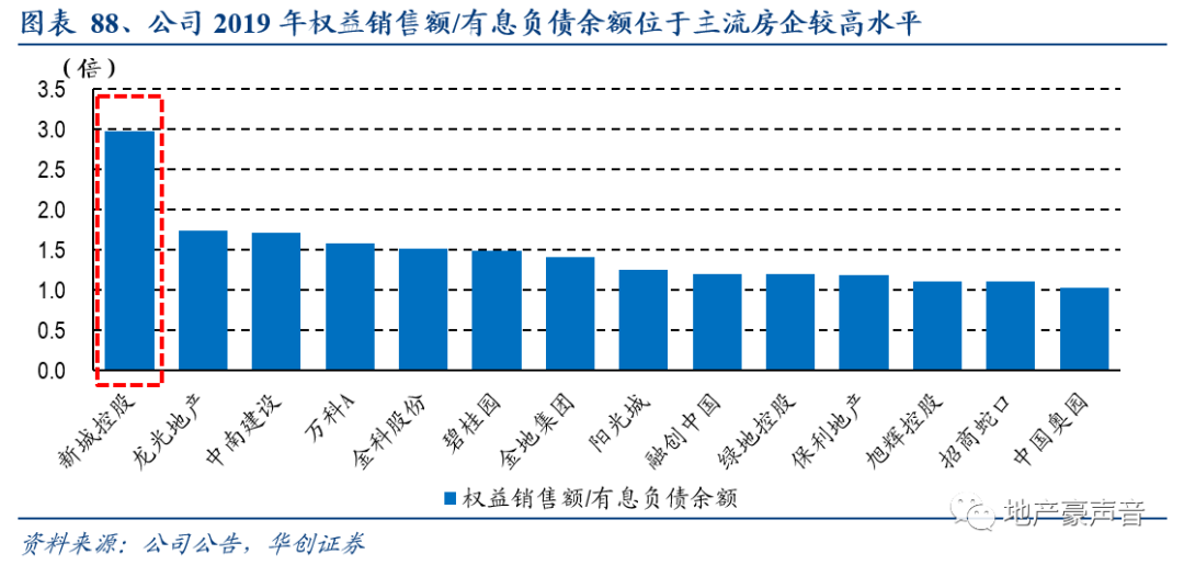2)债务使用效率:公司权益销售额/有息负债余额达3倍,处于行业最优水平,显示出公司的债务使用效率较高,资金没有闲置,运营能力较强。