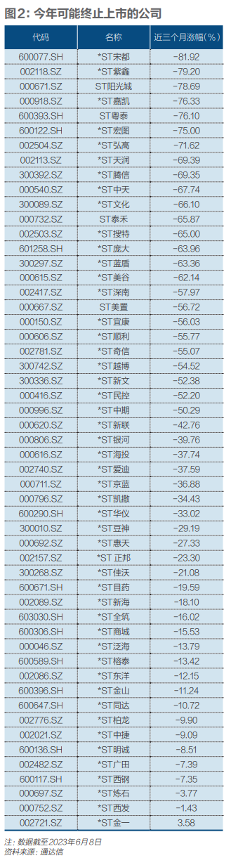 2023年5月以来,随着2022年年报数据披露完成,又一批符合退市规则的上市公司开始履行退市程序,退市制度逐步在A股常态化。