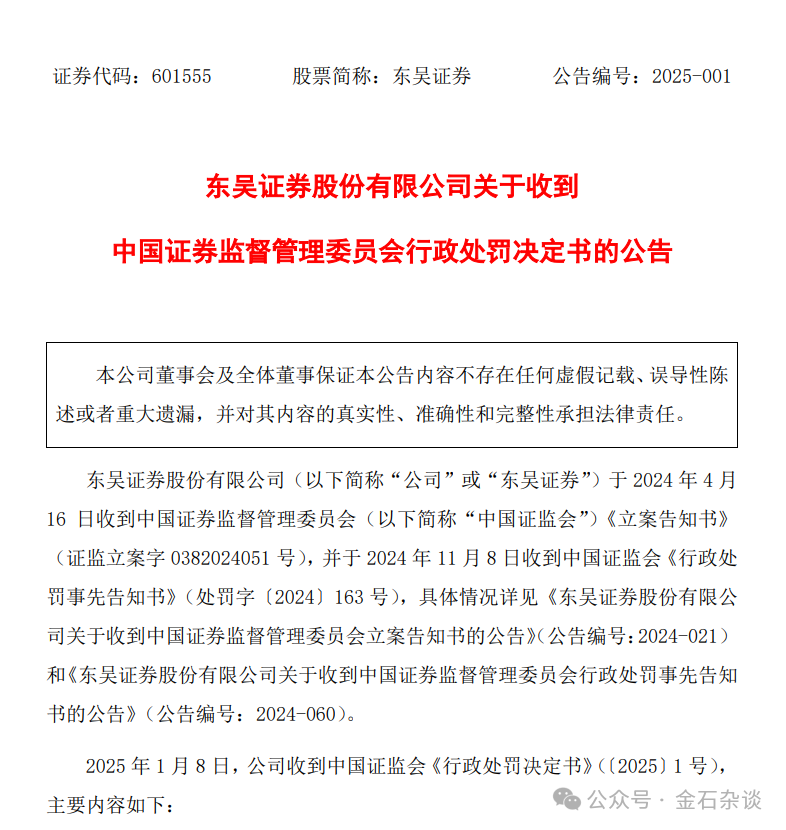 1月9日晚间,东吴证券收到证监会行政处罚书,由于在国美通讯、紫鑫药业非公开发行股票项目中未勤勉尽责,东吴证券被合计罚没1336.44万元,4名涉事保代被另行罚款共计170万元。