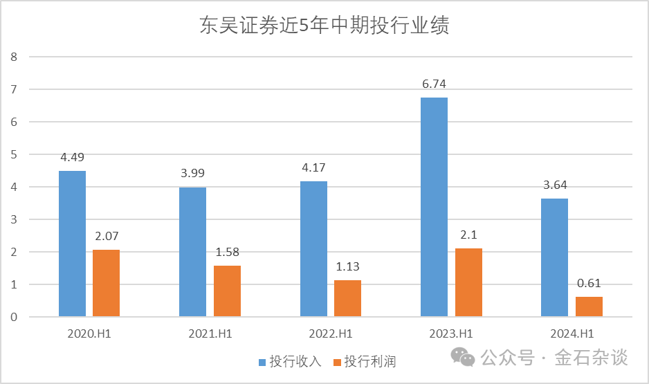 但是,就投行业务来看,东吴证券明显上演了业绩大滑坡。2023年中期公司实现投行业务收入6.74亿,投行业务利润2.1亿,彼时风光无二;但是只隔一年业绩就被打回原形,2024年中期投行收入腰斩,投行业务利润暴跌70.95%。前三季度,公告显示,东吴投行业务手续费净收入却仅为5.13亿元,同比下降43.45%。
