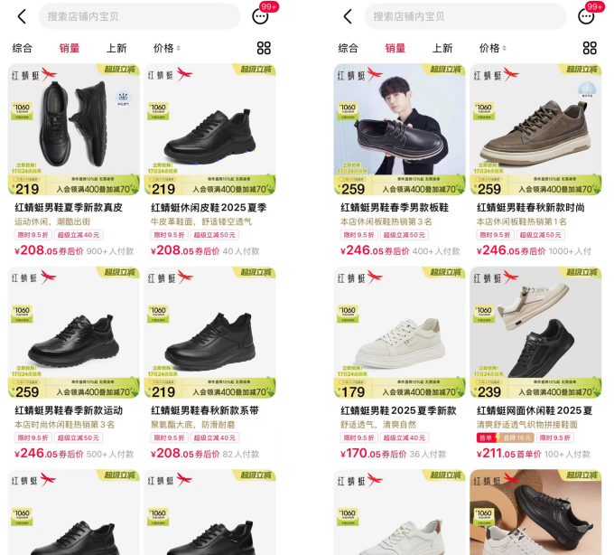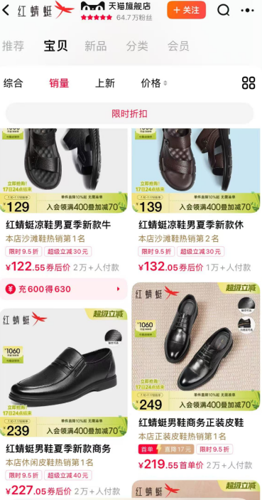 图片说明:天猫红蜻蜓男鞋官方旗舰店按销量排序,数据来源于天猫APP