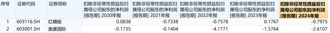 图片说明:奥康国际和红蜻蜓都在持续亏损,数据来源于Wind