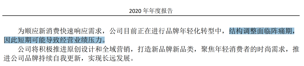 图片说明:2020年报中对于转型风险的提示,数据来源于公司公告