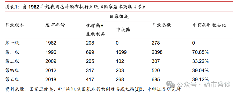 (1)1982年第1版:1982年,我国遴选208种西药,颁布第1版《国家基本药物目录》。