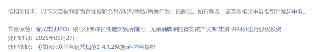 但是,是否涉嫌非法吸收公众存款或非法集资,涉及到我国《刑法》以及《商业银行法》,以及最高人民法院和央行的诸多司法解释和监管条文。春光集团招股书披露后,陆续有媒体对其过往长达4年的“集资”历史定性提出质疑,交易所对此也有所疑虑。但春光集团面对质疑,采取了“鸵鸟政策”,对新经济IPO的文章,春光集团以“侵犯名誉/商誉/肖像“名义向微信公众号投诉“。这个投诉理由非常荒唐,春光集团为何不敢投诉新三板和深交所审核人员?没有审核人员问出这个让企业难堪的问题,春光股份的对外集资黑历史恐怕不会被媒体和投资人了解。