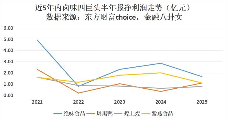 而这些营收带来的净利润,倒是走出了分化,绝味和紫燕出现下滑,周黑鸭和煌上煌都实现了增长。