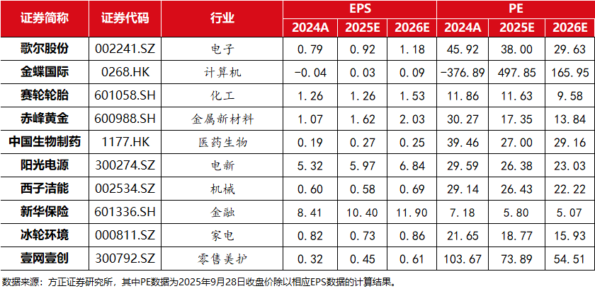 方正证券·10月金股组合