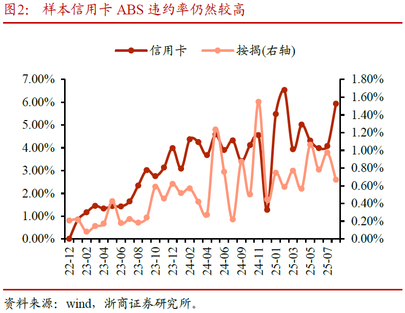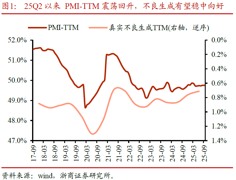 (4)不良稳中向好:预计25Q1~3上市银行信用成本0.73%,不良生成延续稳中向好态势,核心压力仍然在零售贷款。(1)整体趋势:上市银行不良生成与PMI-TTM呈负相关关系,2025年4月以来PMI整体呈现震荡回升态势,有望带动银行不良生成稳中向好。(2)结构来看:主要压力点仍在零售。2025年8月样本信用卡ABS的单月违约率较2025年6月上行195bp至5.93%。对公方面,地产风险暴露压力趋稳,叠加制造业逐步回暖,预计对公风险压力稳中向好态势延续。