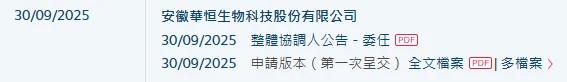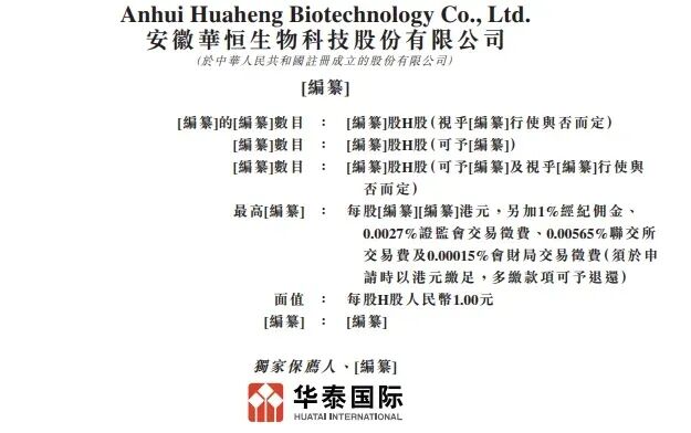 华恒生物,于2025年9月30日向港交所递交招股书,华泰国际独家保荐。