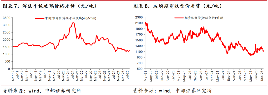 玻璃本周期现价格均上涨,政策催化下中下游补库。需求端来看,9-10月份传统旺季订单改善力度一般,需求端尚未表现出旺季特点,目前行业供需矛盾仍存,下游终端需求改善有限,后续持续关注政策变化及下游补库持续性。