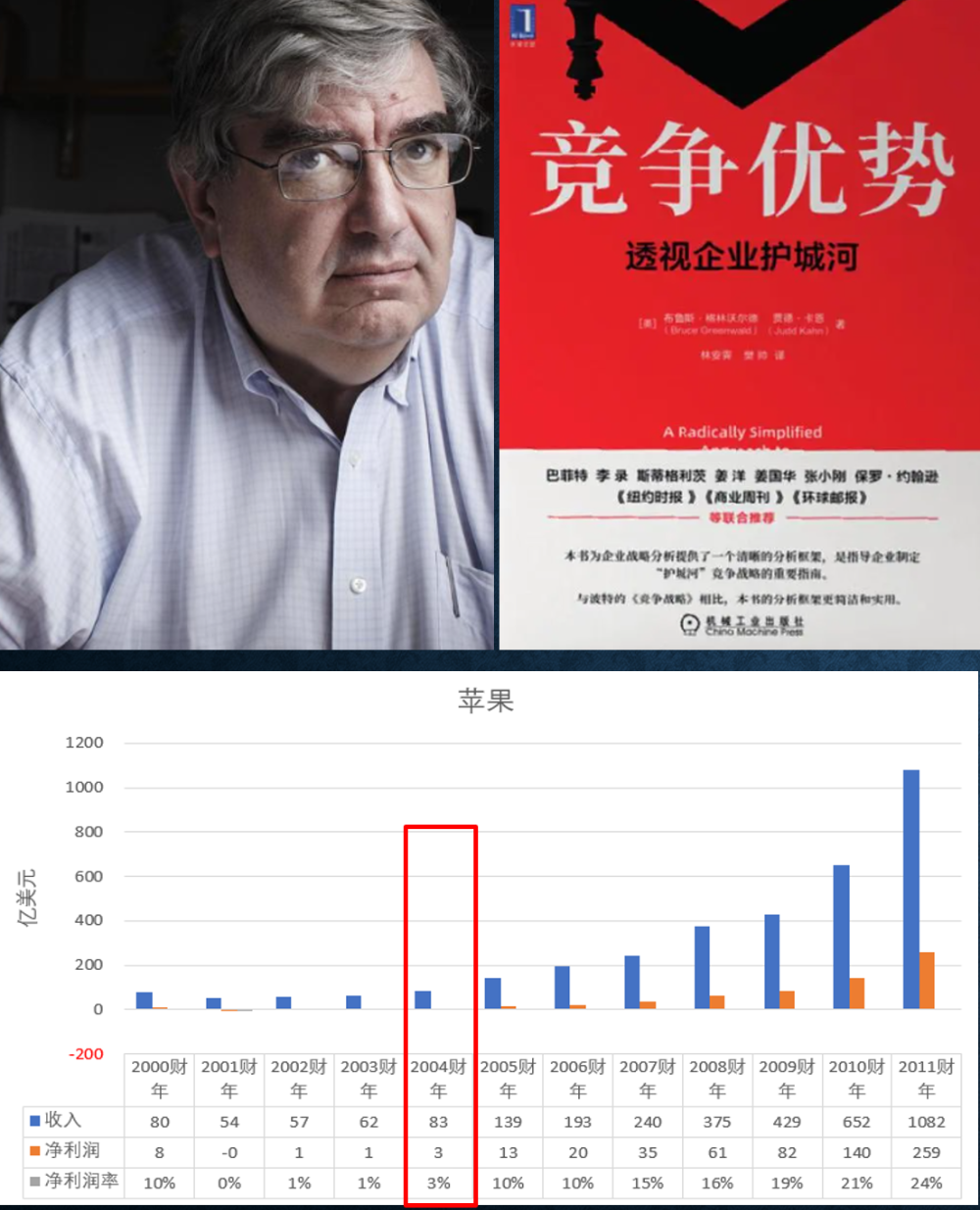 在《竞争优势》一书中,哥伦比亚大学布鲁斯.格林沃尔德教授以苹果公司为例进行竞争优势分析。