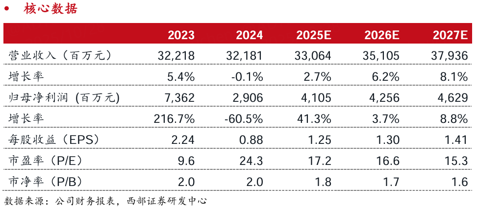 公司发布2025年三季报。2025年前三季度,公司实现营业收入229.13亿元(同比+2.06%),归母净利润35.35亿元(同比+38.92%),扣非归母净利润25.56亿元(同比+13.04%)。