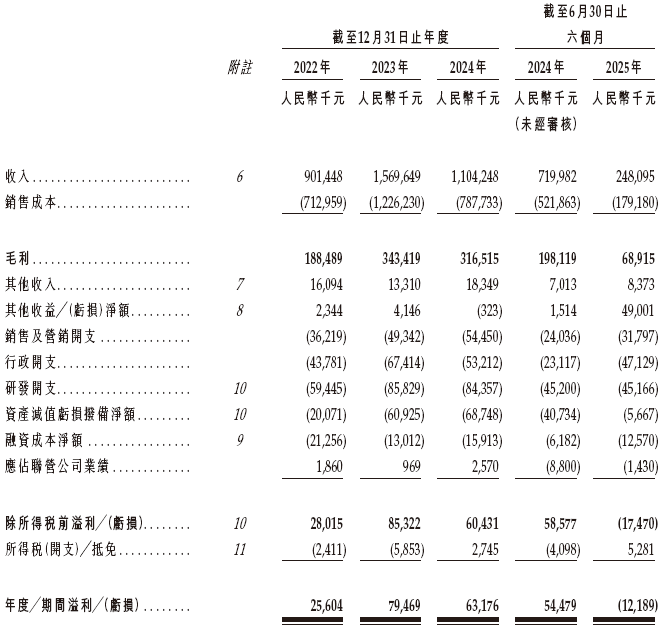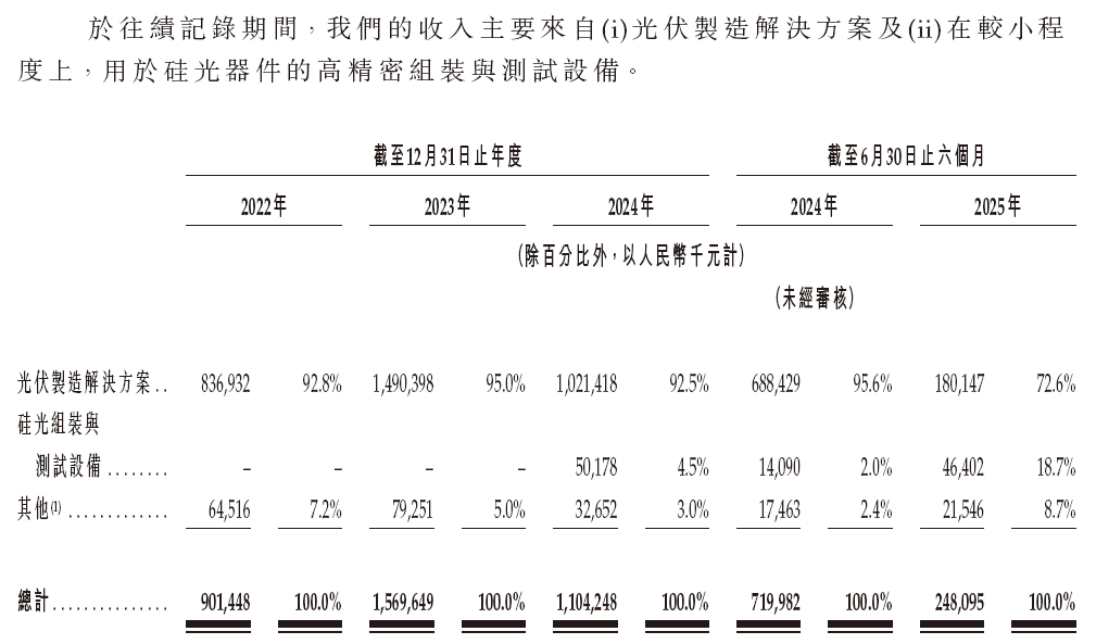 招股书显示,在过去的2022年、2023年、2024年和2025年前六个月,罗博特科的营业收入分别人民币9.01亿、15.70亿、11.04亿和2.48亿元,相应的净利润分别为人民币2,560.4万、7,946.9万、6,317.6万和-1,218.9万元。