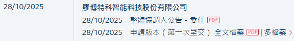 2025年10月28日,来自江苏苏州的A股上市公司罗博特科智能科技股份有限公司RoboTechnik Intelligent Technology Co., Ltd..(下称罗博特科)在港交所递交招股书,拟在香港主板上市。