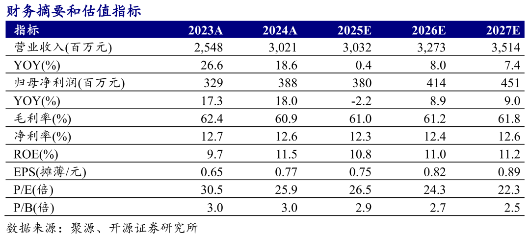 2025年前三季度公司实现营收23.06亿元,同比-1.0%,归母净利润3.24亿元,同比-2.8%;Q3营收5.46亿元,同比-4.9%,归母净利润0.26亿元,同比-33.0%,扣非归母净利0.29亿元,同比-19.0%,我们下调2025-2027年盈利预测,预计2025年-2027年归母净利润分别为3.8(-0.3)亿元、4.1(-0.5)亿元、4.5(-0.9)亿元,同比分别-2.2%、+8.9%、+9.0%,EPS分别为0.75(-0.05)元、0.82(-0.09)元、0.89(-0.17)元,当前股价对应PE分别为26.5、24.3、22.3倍。公司稳扎稳打,坚定推进营销变革,结构升级持续,省外调整有序,维持“增持”评级。