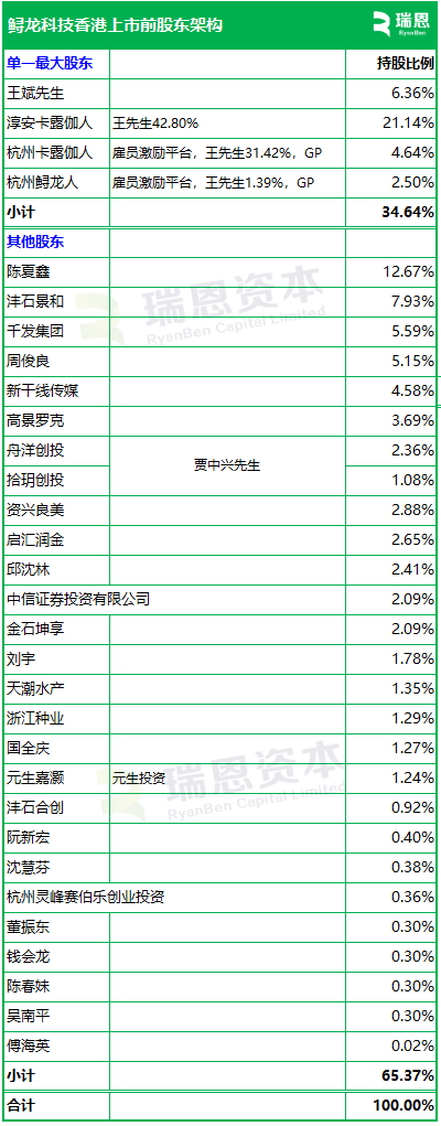 招股书显示,鲟龙科技在香港上市前的股东架构中,