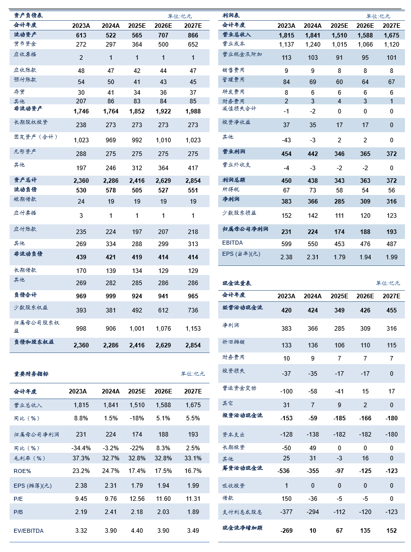 盈利预测与投资评级:我们认为,未来3-5年煤炭行业依旧呈现供给无弹性、需求有弹性的格局,国内动力煤价格中枢有望中高位运行。陕西煤业坐拥陕北优质煤炭资源,成本优势突出,且实施煤电一体化战略,后期具备较大增量空间,公司发展前景广阔。未考虑股权投资股价波动对净利润的影响,我们预计公司2025-2027年实现归母净利润为174/188/193亿元;EPS为1.79/1.94/1.99元/股,维持“买入”评级。
