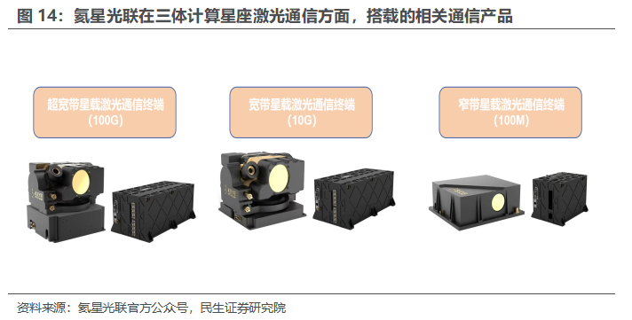 2)通信领域:氦星光联以三体计算星座为示范载体,构建 “主链 + 低链” 混合激光网络架构。主链卫星通过 100Gbps链路实现核心节点高速互联,低链卫星以 10Gbps/100Mbps 链路覆盖边缘节点,形成 “高速骨干+灵活接入” 的立体化通信网络。在此次“三体计算星座”首发12颗卫星发射中,氦星光联提供了24套激光通信终端,也是国内第一家同时完成11条星间链路在轨建链、在轨通信、在轨互联计算的激光终端制造企业。