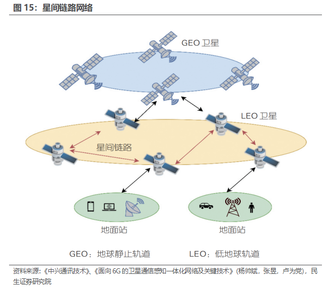 星间链路:根据《中兴通讯技术》,星间链路技术主要采用微波通信和激光通信两种形式。1)微波通信:应用范围广、技术相对成熟,成为当前通信领域的主流选择。不过,其传输速率的提升会受到带宽、设备尺寸及成本等因素的制约,存在一定局限性。2)激光通信:其宽带特性能大幅提升卫星移动通信的潜在容量,同时还能缩减卫星负载的尺寸与重量。更关键的是,激光通信技术可在广域范围内实现高度单跳连接,大幅降低信号通信延迟,对于实时性要求较高的感知任务而言至关重要。