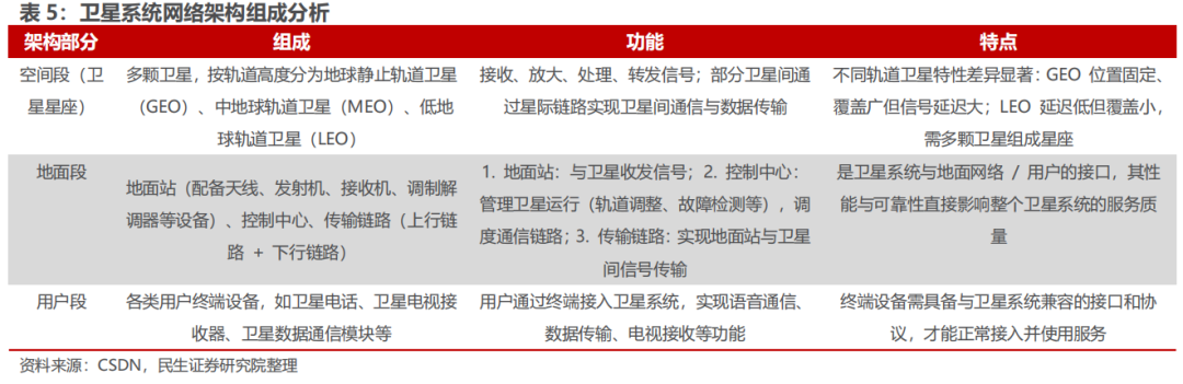 卫星系统网络架构通常由空间段、地面段和用户段三部分组成。1)空间段:由多颗卫星组成,根据轨道高度可分为地球静止轨道卫星(GEO)、中地球轨道卫星(MEO)和低地球轨道卫星(LEO),负责信号的接收、放大、处理和转发。2)地面段:包括地面站、控制中心和传输链路等,是卫星系统与地面网络或其他用户之间的接口,其性能和可靠性直接影响整个卫星系统的服务质量。3)用户段:包括各种用户终端设备,如卫星电话、卫星电视接收器、卫星数据通信模块等,用户通过用户终端设备接入卫星系统,实现语音通信、数据传输、电视接收等功能。