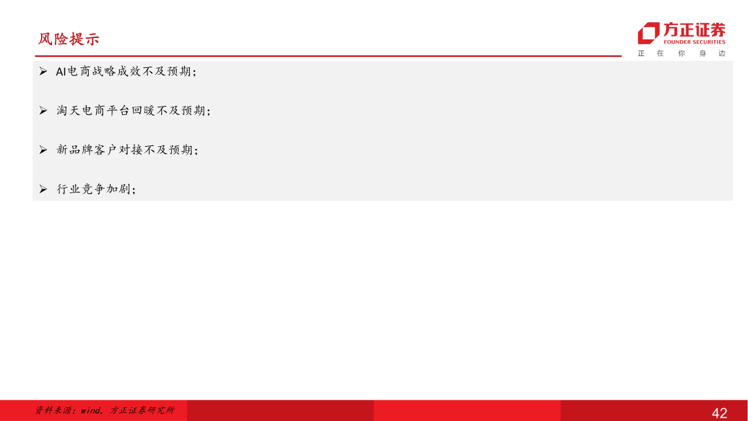 风险提示:AI电商战略成效不及预期;淘天电商平台回暖不及预期;新品牌客户对接不及预期;行业竞争加剧
