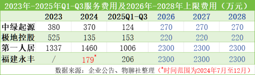 在与第一人居、福建永丰的的协议中,第一服务作为采购方,未来三年应支付的年均费用均为2300万元,与过去两年实际支付的费用相比,则显现出更大的差值。