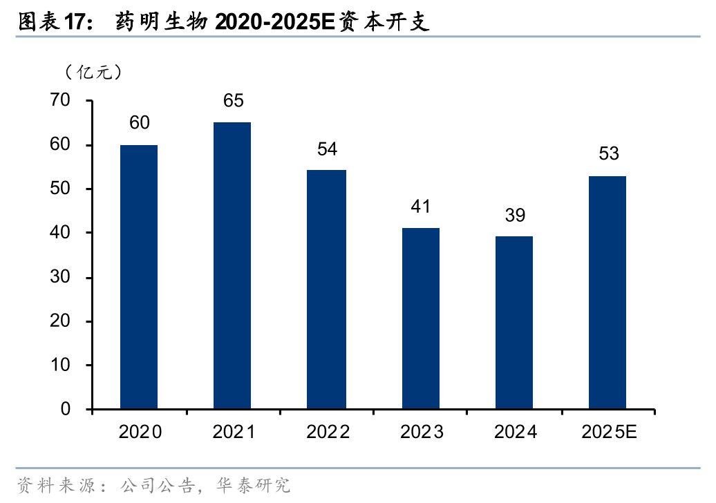 新冠相关短期业绩及产能压力消化已较为充分。由于行业在新冠疫情期间激增了大量药品及疫苗供应需求,相关CXO公司产能及业绩在2021-2022年期间实现快速增长。然而,伴随新冠疫情得到有效控制,行业短期一过性需求所带来的业绩高基数及冗余产能亦对相关CXO公司在2023-2024年的经营情况带来一定压力。伴随行业常规需求的持续复苏,叠加自身内部的提质增效,目前相关CXO公司的业绩及产能压力已消化的较为充分,其1H25业绩已重回较快增长且资本开支已呈边际增加趋势。相关CXO公司包括: