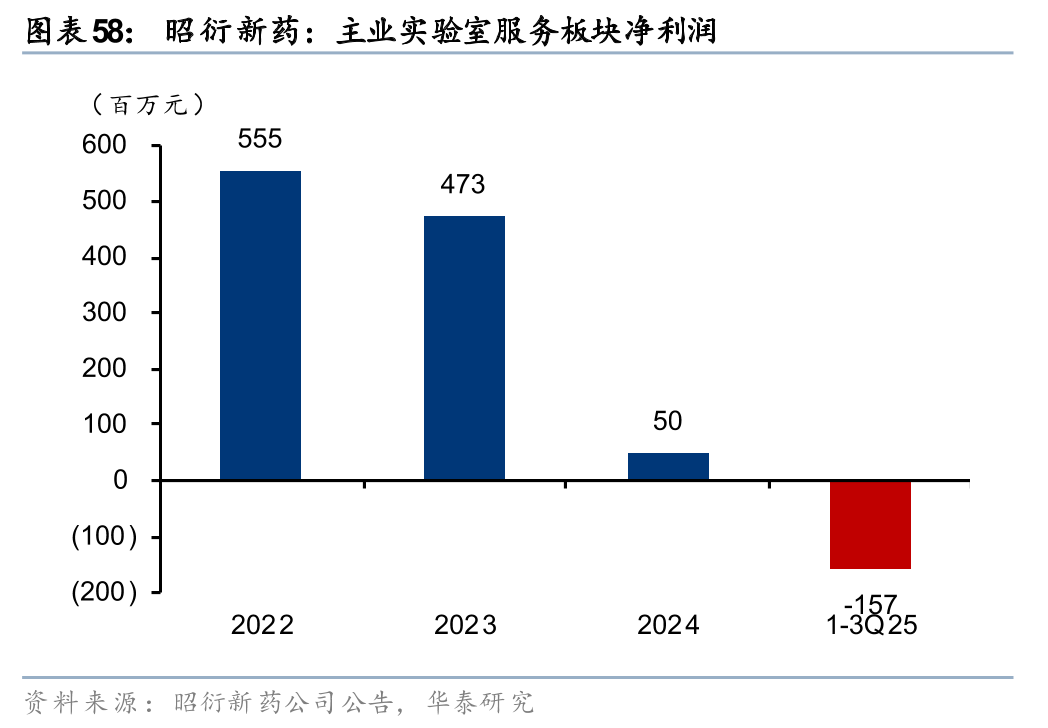 1)供给端:在本轮下行周期中,因需求减少导致激烈的降价内卷(尤其内需市场),CXO供应商盈利空间被急剧压缩。以已上市的细分龙头为例:昭衍新药的主业实验室服务板块24年净利润同比下滑近90%,1-3Q25净利润则亏损1.57亿元;美迪西24年及1-3Q25利润端亦持续亏损。已上市的细分龙头已处于盈亏边缘甚至面临亏损,未上市的中小公司处境则更加艰难,部分或面临资金链断裂、破产倒闭、寻求被收购等困境。