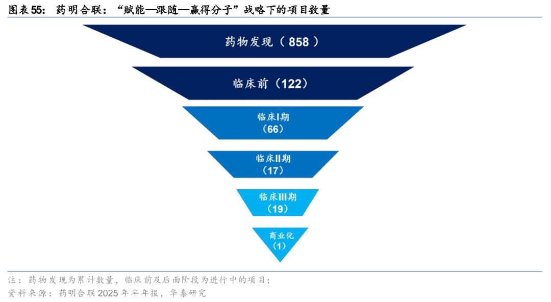 3)产业升级:新分子CRDMO普遍拥有更高的景气度(全球多肽CRDMO、寡核苷酸CDMO、ADC CRDMO市场规模24-28年CAGR分别为23.8%、26.3%、30.3% vs CRDMO整体的10.7%)且技术壁垒更高(合成、纯化、生产等困难重重,且部分涉及生物制剂及小分子两方面的跨学科专业知识)。中国供应商凭借快速扩产能力、成本优势、及在小分子领域的深厚积累等在TIDES、ADC领域已跻身全球第一梯队且维持较高的利润率水平(药明康德24年TIDES收入8.15亿美元,已超过Bachem及Polypeptide;其化学业务毛利率46% vs Bachem、Polypeptide整体的30%、12%;药明合联2024-1H25全球份额已达22.2%)。我们认为,凭借充沛的在手订单(药明合联截至1H25在手订单同增57.9%)+陡峭的产能扩张(药明康德、凯莱英预计25年底多肽固相合成产能将超10万升、达4.4万升)+强劲的漏斗效应(多数项目尚处临床及早期阶段),国产新分子CRDMO已进入加速上升通道。