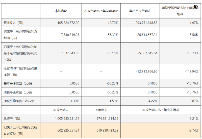今年前三季度,通业科技营业收入为2.94亿元,同比增长11.97%;归母净利润为2661万元,同比下降15.56%;扣非净利润为2536万元,同比下降13.73%。