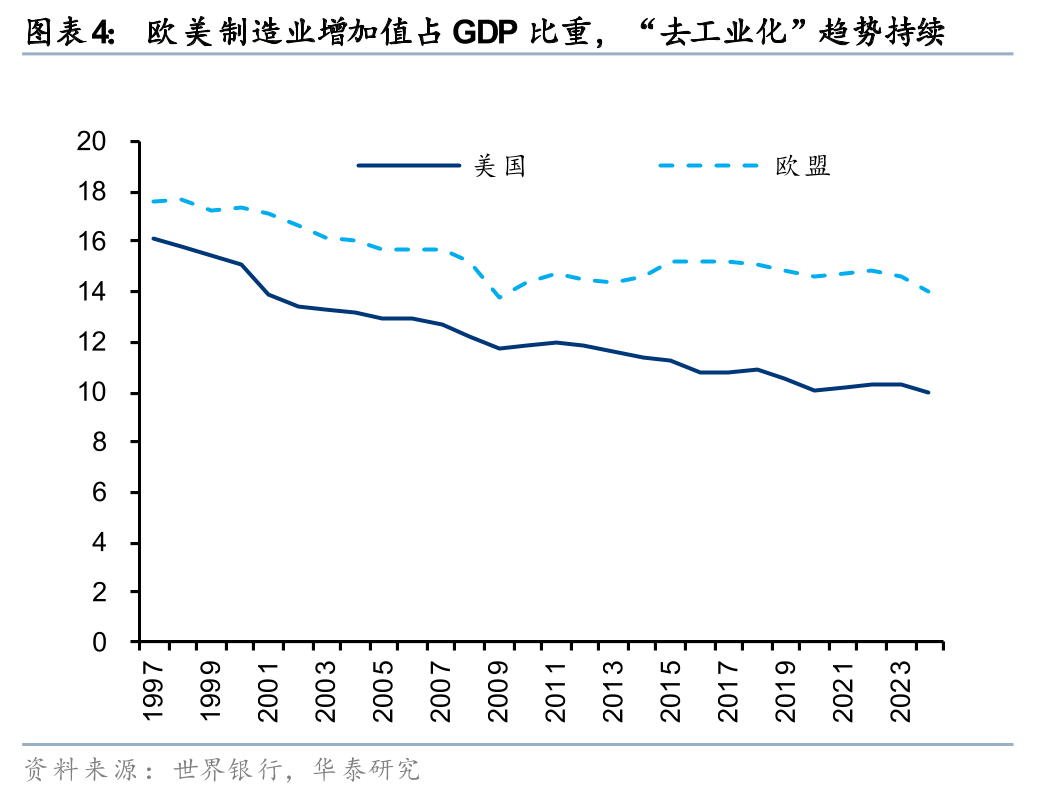 依托完备基础设施体系,国内企业迎来发展机遇。相比欧美“去工业化”背景下制造业回流受制于高劳动力成本与技能短缺,中国企业依托完备的基础设施体系,通过长期积累加速技术突破,推动国产替代。