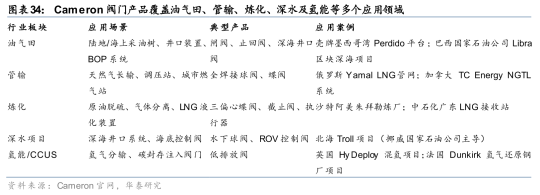 阀门与驱动:拥有多个享誉全球的阀门子品牌,如CAMERON(闸阀、球阀)、GROVE(管线球阀)、ORBIT(无磨损开启的升降杆式球阀)、WKM(蝶阀、球阀)等,产品线覆盖了从通用到严苛工况的各类应用。
