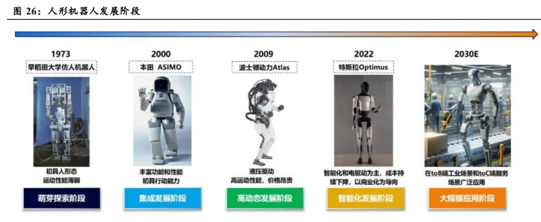 21 世纪以来,人形机器人发展逐步踏入正轨,各国设计开发了各具特色的人形机器 人,在运动控制方面的技术也逐步推陈出新。美国、日本、法国、德国、意大利、英国、 韩国等发达国家均在人形机器人领域有诸多试验性产品推出,中国在早期也有部分产品推出。在运动控制方面,日本美国等老牌发达国家在技术积累深厚,在十余年前就有相 关技术持续突破,有良好基础,而在近年的 AI 大模型与运动控制结合方面,特斯拉等企 业也依旧走在时代前列。长期的积累使比如美国、日本、德国等主要发达国家在人形机 器人领域的技术积累深厚,在各个相关环节也存在一些资格较老的优质企业,有助于未 来人形机器人产业化进程的推进。在传统工业工艺的深厚积累也使美国企业在本轮人形 机器人浪潮中扮演了重要角色。