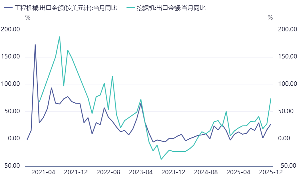 挖掘机作为核心品类,2025年出口增速持续超越行业整体,12月单月出口金额同比激增74.26%,彰显了在复杂全球贸易环境下的强大竞争力。